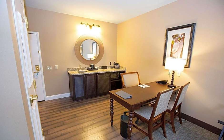 This suite features a flat-screen cable TV, microwave, and small refrigerator. Coffee-making facilities are also included.
